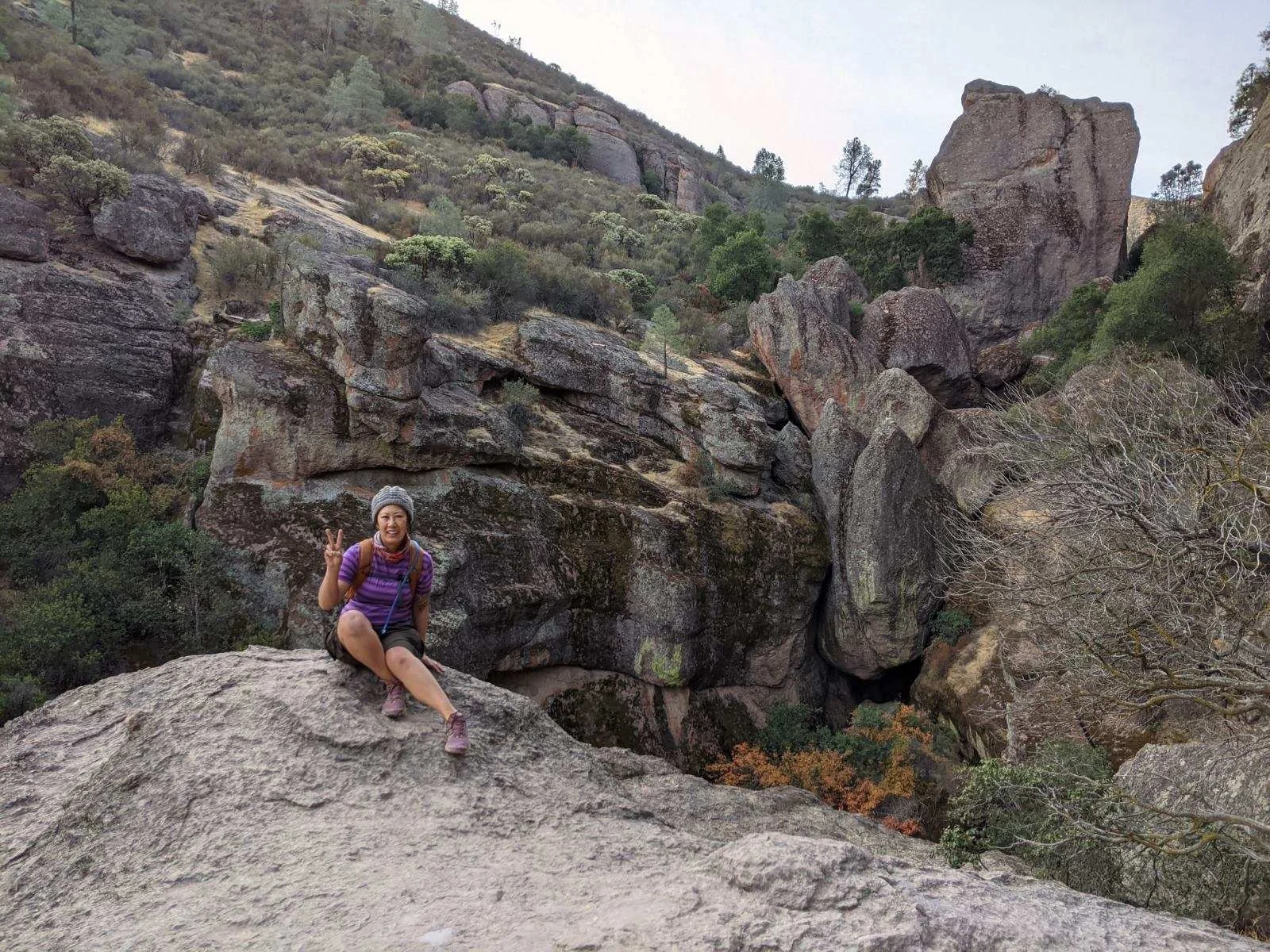 Jennifer at Pinnacles National Park in California. Photo by: hello@sojourntrekkr.com