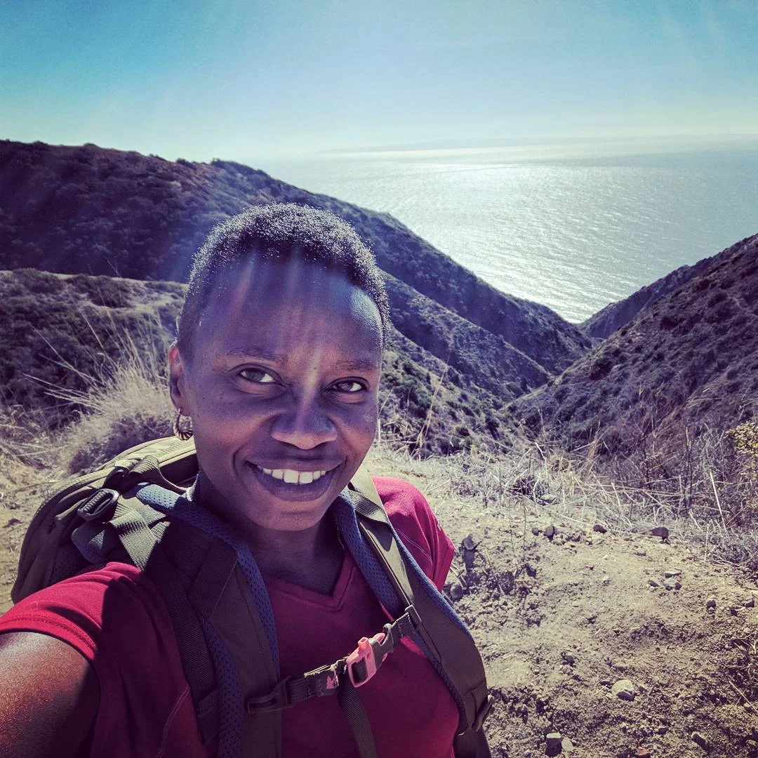 Author Tiffany McClain at the summit of the Garden-to-Sky trail on Catalina Island during her California trip.